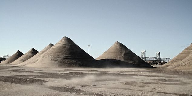 In a parking lot in Queens, NY, 18 piles of sand reaching 30 feet tall were collected. After days of wind and rain, the sand dunes looked like ancient pyramids. Photographs of this site portray the art nature left behind.