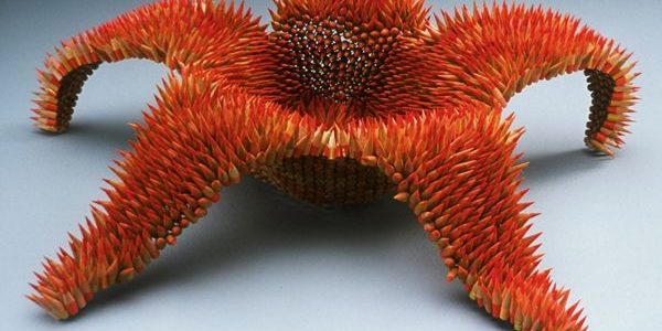 While this is all very interesting, there is another element to Jennifer Maestre’s art that is astounding: Her inspiration. In a statement about the sculptures, Maestre notes that the form and function of sea urchins sparked and fueled her idea. She talks about the paradox that exist between the beauty of a colorful sea urchin that invites an individual’s touch and the danger of the sharp points on its shell. With this in mind, she set out to create art with that same tension.